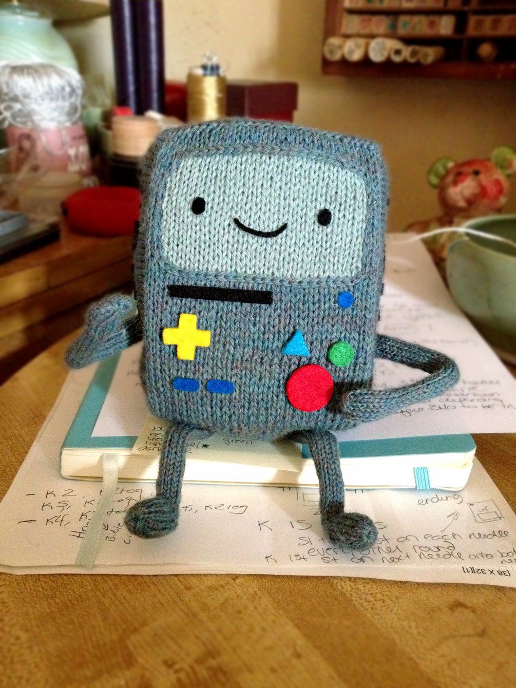 A ***knitting pattern*** (not a finished object) for a "lifesized" Beemo! (I assume this is how big BMO would be if it were real anyway...