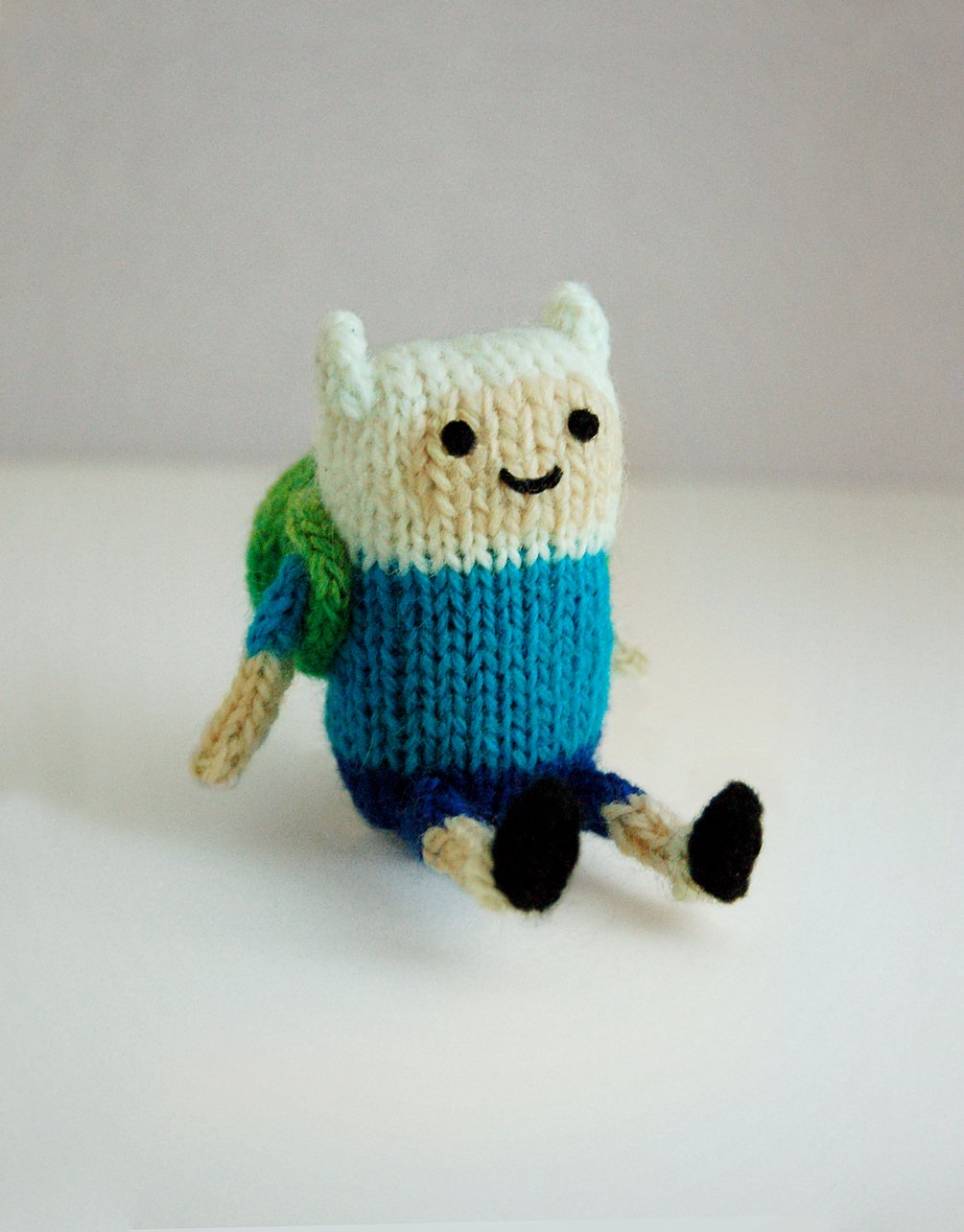 A ***knitting pattern** (not a finished object) of a tiny Finn (with his iconic backpack) to keep your Pocket Jake and Pocket Beemo company!